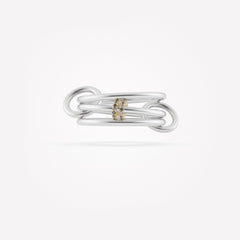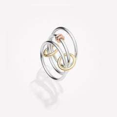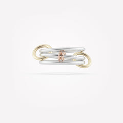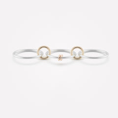 The Acacia’s contemporary design features three bands of equal gauge that support two orbiting annulets, offering an everyday style that’s delicate and lightweight, yet powerful in its minimalism. Two connectors link each band together, encouraging the Acacia to be worn spread across multiple fingers or stacked as a sculptural whole. Each Acacia is individually handcrafted in Los Angeles.