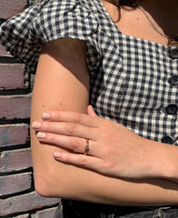Our rings can be worn across several fingers, or stacked all on one. To wear stacked on one finger, order the true size of the finger you'd like to fit. To wear across several fingers, order the size of the largest finger. If you're unsure of your size, we are happy to send you a ring sizer. Email us your name and address to dear@spinellikilcollin.com. For more information on our sizing, click here