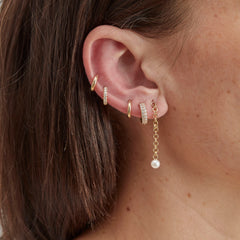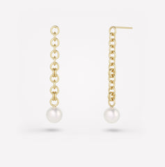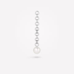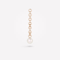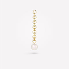 The Anaka Pearl earring features a handcrafted 1.25” gravity chain and a luminous, mini South Sea white pearl anchored to an 18k gold post. Available in .925 sterling silver and 18k yellow gold, the Anaka Pearl is accompanied by pure 18k comfort push backs.
