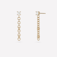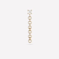 The Anaka White Diamond earring takes the Anaka silhouette to new heights of luxury by featuring a hand-selected white diamond stud atop our most popular, handcrafted Gravity Chain in 18k yellow gold. Designed for interplay with other styles from our modular collection, the Anaka White Diamond can be worn in multiple ways and is accompanied by pure 18k comfort push backs. Each Anaka White Diamond is individually handmade in Los Angeles.