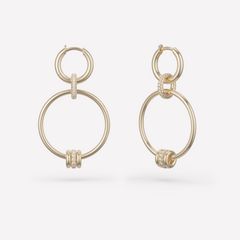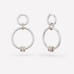 The Asha Hoops feature a medium silhouette with lightweight, versatile components handcrafted from .925 sterling silver and 18k yellow gold. Flowing from our popular Micro Hoop design, the drop hoop features tactile annulets in solid or pavé construction. A jump ring allows this style be worn with other Spinelli Kilcollin hoops, or as a necklace charm. Each pair of Asha Hoops are individually handmade in Los Angeles.