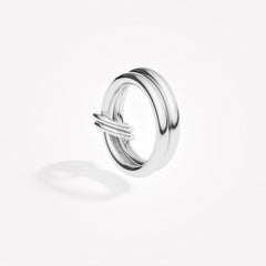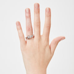 The Atticus ring's pair of equal-gauged bands and matching pair of connectors symbolize the marking of time and experiences in love. Each Atticus is individually handmade in Los Angeles.
