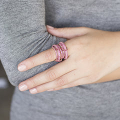 Our rings can be worn across several fingers, or stacked all on one. To wear stacked on one finger, order the true size of the finger you'd like to fit. To wear across several fingers, order the size of the largest finger. If you're unsure of your size, we are happy to send you a ring sizer. Email us your name and address to dear@spinellikilcollin.com. For more information on our sizing, click here