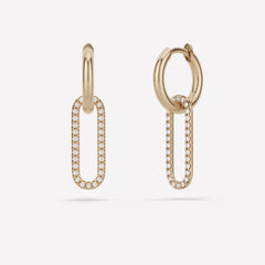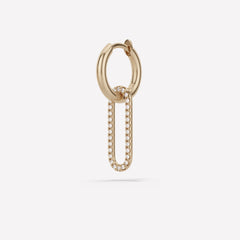 Crafted entirely in 18k yellow gold, the Haru Earrings feature an elongated link set with forward-facing white diamonds. Each unfixed link is paired with our classic 18k yellow gold micro hoop, making this style perfect for mixing, matching and customizing. The Haru Earrings are available in both single or pair configurations and are individually handmade in Los Angeles.