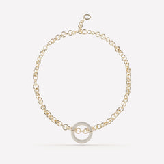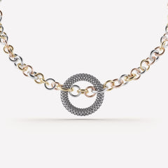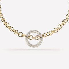 The Interlocking Pendant Necklace is composed of a 5mm pendant with micro-pavé diamonds (approx. 7.0 cttw), intertwined into a 16 inch chain for a stunning, evocative choker closed by an adjustable s-hook.