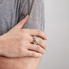 Our rings can be worn across several fingers, or stacked all on one. To wear stacked on one finger, order the true size of the finger you'd like to fit. To wear across several fingers, order the size of the largest finger. If you're unsure of your size, we are happy to send you a ring sizer. Email us your name and address to dear@spinellikilcollin.com. For more information on our sizing, click here