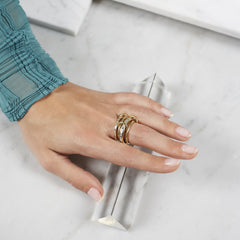 Our rings can be worn across several fingers, or stacked all on one. To wear stacked on one finger, order the true size of the finger you'd like to fit. To wear across several fingers, order the size of the largest finger. If you're unsure of your size, we are happy to send you a ring sizer. Email us your name and address to dear@spinellikilcollin.com. For more information on our sizing, click here