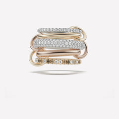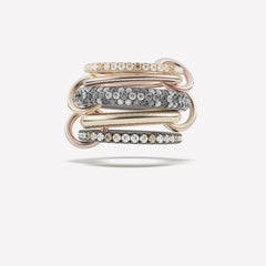 The Leo constellation is a celestial wonder, evoking motion and grace with its cascade of stars. This natural occurrence of opulent light was the direct inspiration for our Leo ring. Featuring three eternity bands of pavé-set diamonds, the Leo embraces multi-tonal fine metals and a modular design. Commonly worn across several fingers in classic, arrestingly Leo style, this ring’s metals and diamonds are customizable, with 18k yellow gold, rose gold, silver and Black Gold options, and diamonds ranging from brilliant white, to champagne and cognac tones. Each Leo ring is individually handmade in Los Angeles.