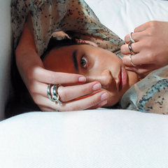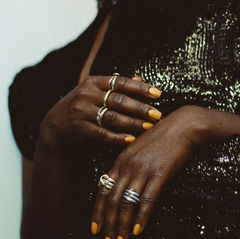Our rings can be worn across several fingers, or stacked all on one. To wear stacked on one finger, order the true size of the finger you'd like to fit. To wear across several fingers, order the size of the largest finger. If you're unsure of your size, we are happy to send you a ring sizer. Email us your name and address to dear@spinellikilcollin.com. For more information on our sizing, click here