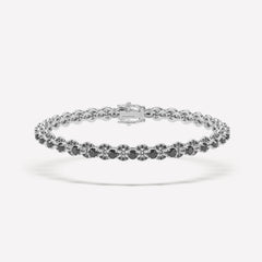 The Lumia Tennis Bracelet is a contemporary interpolation of a timeless design. Crafted entirely from 18k white gold and featuring hand-selected natural white or black diamonds, this stunning bracelet features a unique setting design that creates a dazzling visual effect. Complete with a safety clasp in matching 18k white gold for extra security, the Lumia Tennis Bracelet can be worn in confidence and elegance. Each Lumia Tennis Bracelet is individually handcrafted in Los Angeles.