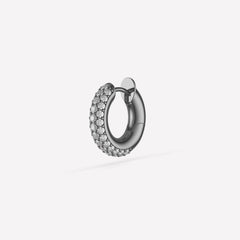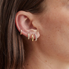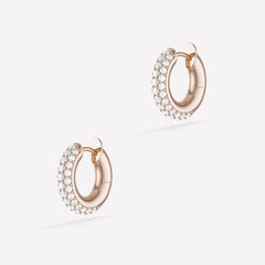 The Macro Hoop Pavé features three rows of stunning, micro pavé white diamonds and is available in pure 18k yellow, rose and white gold. The Macro Hoop Pavé features a seamless comfort closure and pure 18k gold posts. Each Macro Hoop Pavé is individually handmade in Los Angeles.
