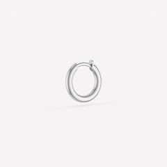 The Micro Hoop epitomizes the perfectly streamlined hoop earring. Its seamless comfort closure ensures that this style has a fully fluid silhouette and emphasizes the depth and radiance of its rich 18k gold or silver construction.