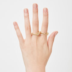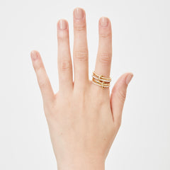 The Polaris YG linked ring breathes warm and light into every ensemble. Comprised of four 18k yellow gold linked bands, two of which are pavé set with white diamonds, the Polaris YG linked ring is as glowing as it is versatile. The Polaris YG linked ring is completed with three 18k yellow gold connectors. Each Polaris YG linked ring is handmade in Los Angeles.