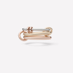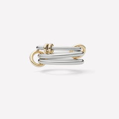 The Raneth is an immediate classic. With a minimalist design featuring combinations of three core bands in pure 18k yellow gold and sterling silver, the Raneth is offset by two orbiting connectors and two annulets. The Raneth's linked bands can be worn across multiple fingers or stacked as a single, elegantly structural piece. Each Raneth is individually handmade in Los Angeles.