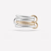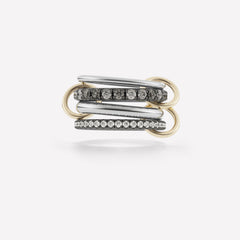 An expression of luxury and innate strength, the Sagittarius features a rich foundation of multi-gauged bands ranging from full to half round. A trio of 18k gold and sterling silver connectors matched with either an all-metal or pavé-set construction ensure the Sagittarius is ready for any adventure. Each Sagittarius is individually handmade in Los Angeles.