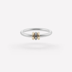 The Silas SG is an iconic ring, with a minimalist, unisex design that puts material first. Featuring a band of .925 sterling silver adorned with three annulets, this Silas SG linked ring features an option for an 18k black gold annulet, and is stunning worn alone or as an orbiting addition to other Spinelli Kilcollin rings. Each Silas SG linked ring is handmade in Los Angeles.