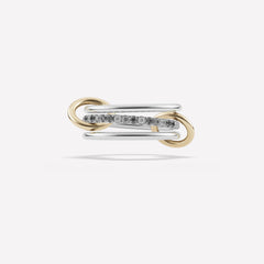The Sonny ring was forged with simplicity in mind. Its core band of pavé diamonds is framed by two outer bands of solid metal, linked by two matching connectors. The Sonny features thin 1.7mm bands, and is perfect for stacking. Ideally suited for everyday wear, the Sonny features a fully-customizable design, with multiple fine metal options including: rose, yellow and white gold, all of 18k purity. Each Sonny is individually handmade in Los Angeles.