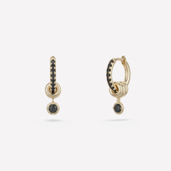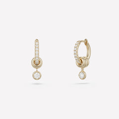 The Zahra Pavé Hoop Earrings display a familiar, streamlined silhouette and comfort closure in 18k gold or .925 sterling silver with pavé-set stones. Three annulets adorn each hoop, the center of which bears a drop charm for added contrast and movement. Each Zahra Pavé Hoop Earring is individually handmade in Los Angeles.
